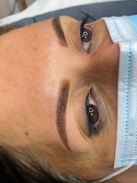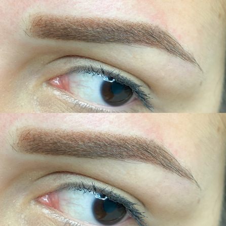 Nano fios com a técnica Nanoblading Threading, laminação de sobrancelhas e design de sobrancelha com Henna.